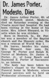 - He appeared on the 1930 US Federal Census of 1020 15th St, Modesto, Stanislaus County, California, enumerated on 12 April 1930, in the household of his parents James Arthur Porter and Florence.1