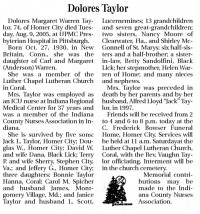 In addition to her husband and parents, Shirley was preceded in death by her step-mother, Helen Fair Warren; a sister Delores Taylor; and a grandson, Setlar Sykes.