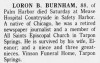 - [S781] The Tampa Tribune, Tampa, FL, Newspaper, Boron B Burnham, obituary notice, published 7 Aug 1996, p 58.