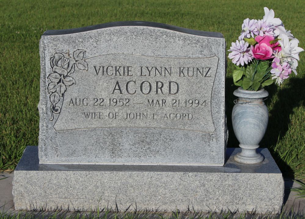 - [S2428] Find A Grave: Montpelier City Cemetery, Montpelier, Idaho, Vickie Lynn Kunz Acord, created by Bruce J Black, added Dec 2009, memorial number 45201384.