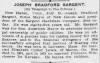 Joseph began business life in Boston in 1839 and then went in 1843 to Georgia. In 1849 he moved to New York City and became a commission merchant. Then in 1850 he went into manufacturing. He took his brothers George and Edward as partners. The business was finally consolidated in New Haven and NYC. He retired in 1887 and became Mayor of New Haven from 1891-1895....from Sargent Genealogy in England and America by Aaron Sargent