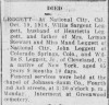 - [S2968] 1860 US Federal Census, Ghent, Columbia County, New York, digital image Ancestry, National Archives micropublication, John T Leggett head of household, roll M653_738, page 783 .