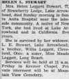 - [S4199] The San Bernardino Sun, California, Newspaper, Helen L Stewart obituary notice, published 14Dec 1954 p 27.