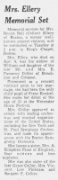 - [S6029] The Boston Globe, Boston, MA, Newspaper, Mrs (Bessie Bell Collier) Ellery obituary notice, published 25 May 1969 p 79.