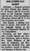 - Flossie May Hamby died on 17 February 1974 in Aurora, Missouri, at age 77.2,3