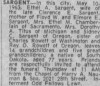 - [S7588] The Sacramento Bee, Sacramento CA, Newspaper, Ethel A Sargent obituary notice, published 12 May 1963, p 33.