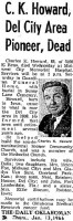 - [S4651] Find A Grave: Sunny Lane Cemetery, Del City, Oklahoma, Charles K Howard, created by In Memory, added May 2009, memorial number: 36759106.