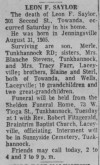 - Leon Saylor was born on 31 August 1905 in Jenningsville, Pennsylvania.2,3