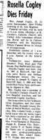 - [S9871] Kossuth County Advance, Algona IA, also known as Algona Kossuth County Advance, newspaper, obituary notice, Rosella Cogley published 10 Jan 1972 p 15.