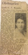 Second child of Alma Eldredge and Marinda Merrill. Leola married William James Bromley (1865-1940) sometime before 1886. William died in Eloro, Mexico. The obituary of Leola (pictured) states her husband died in 1904 although according to some newspaper articles I have discovered, I don't think Leola really knew when he died. Her father tried to help locate William in Mexico to no avail. Leola took her children from Los Angeles in March 1904 to live either with or by her parents in Coalville. Leola is buried next to her parents.