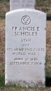 - [S3724] Find A Grave: Golden Gate national Cemetery, San Bruno, California, Francis E Scholes, created by TD Miller, added jan 2014, memorial number 123683110.