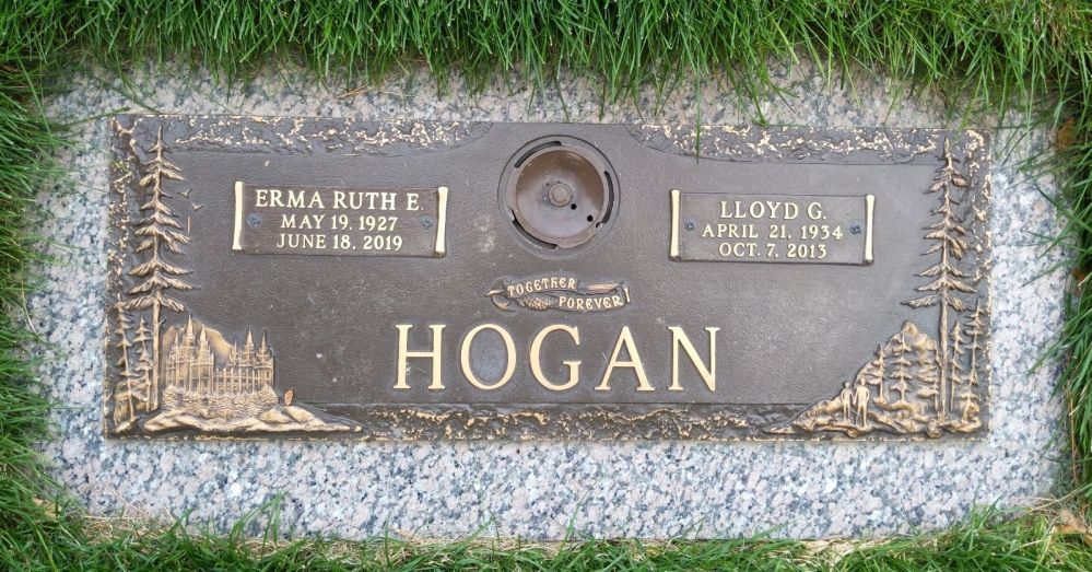 - [S5098] Find A Grave: Mountain View Memorial Estates Cemetery, Cottonwood Heights, Utah, Erma Ruth Eldredge Hogan, created by Ryan D Curtis, added Jun 2019, memorial number 200503616.