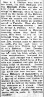 - [S5226] Find A Grave: Oakridge Cemetery, Marshall, Michigan, Melissa K Murray Phillips, created by Amy (Decker) Veenendall, added May 2011, memorial number 70687784.