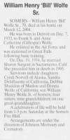 - [S8628] The Missoulian, Missoula, MO, Newspaper, William Henry 'Bill' Wolfe Sr obituary notice, published 24 Mar 2004, p 15.