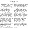 - [S9098] Messenger-Inquirer, Owenboro, KY, Newspaper, obituary notice for Andy J Tait, published 12 Sep 2017 page B3.