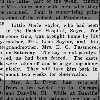 Brief funeral services were held in Manistique by Knights of the Maccabies, of which order Mr. Campbell was a valued member, and the remains were brought to Boyne City Monday accompanied by the family, and were met at Boyne Falls by a deputation from the K.O.T.M of this place. A funeral service was held at the new cemetery where the remains were laid to rest.