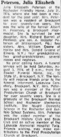 - [S7459] Democrat and Chronicle, Rochester, NY, Newspaper, Julia Elizabeth Peterson obituary notice, published 2 Aug 1974, p 24.