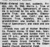 SSG Robert G. True was born in Ogden, Monroe, New York in 1921. He was the son of Morris and Marguerite True. After completing four years of high school he became a payroll clerk and timekeeper. He was not married. According to his enlistment record, Robert was 5'10" tall and weighed 134 pounds.