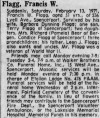 - [S7459] Democrat and Chronicle, Rochester, NY, Newspaper, Francis W Flagg obituary notice, published 16 Feb 1971 p 18.