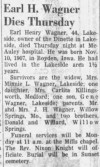 - [S9210] The World, Coos Bay OR, Newspaper, obituary notice Earl Henry Wagner, published 22 Aug 1952 p 1.