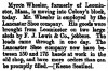 - [S9482] Fitchburg Sentinel, Fitchburg MA, Newspaper, Myron Wheeler, notice, published 11 Feb 1892 p 2.