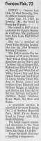 - [S9504] The Greenfield Daily Reporter, Greenfield IN, Newspaper, obituary notie Horace L Fisk, published 28 Feb 1975 p 8.