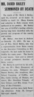 - [S7162] Find A Grave: Oak Hill Cemetery, Griffin, Georgia, David Jackson Bailey, created by Sandy Matthew Beisig, Walk The Earth JK Wilson, added Dec 2006, memorial number 17050190.