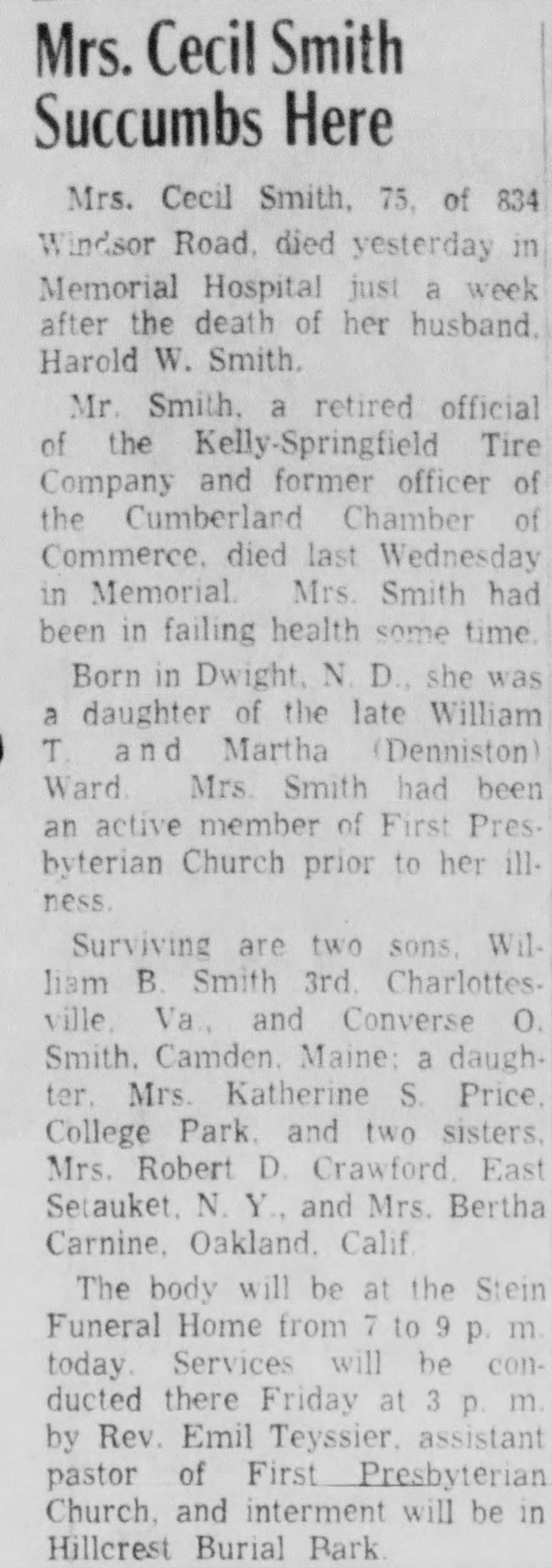She met her husband, Converse Owen Smith, in 1947 at Richmont in Camden.
