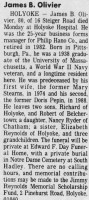 Peach is survived by her daughter Cristen O. Nichols and her husband Daniel P. Gallagher of Brewster as well as her brothers Richard Dick Olivier of Holyoke, MA and Robert Robes Olivier and his wife Judi Oliver and their two sons, Evan Olivier and Cory Olivier of Belchertown, MA, and her former husband Robert Ryder of Chatham as well as countless friends here on Cape Cod.