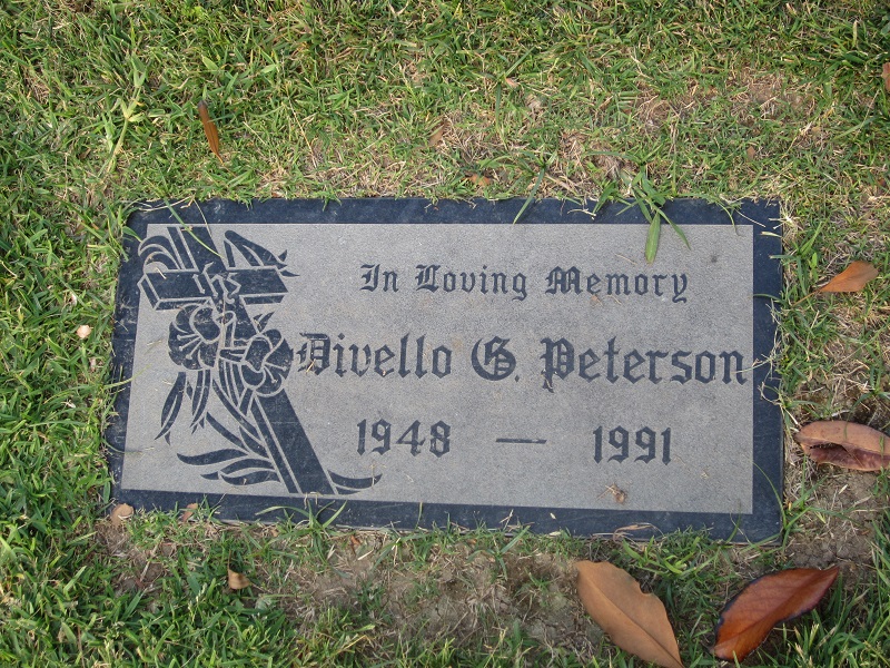 - [S3969] Find A Grave: Rose Hills Memorial Park, Whittier, California, Divello George Peterson, created by Burt, Taphophile Duo, added Jun 2012, memorial number 92497082.