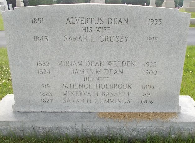 - [S9882] Find A Grave: Union Cemetery, North Smithfield, Rhode Island, Alvertus Dean, created by (Gail) StorybehindtheStones, Bearded Graver, added Nov 2010, memorial number 61740013.