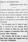 - [S2410] Find A Grave: American Fork Cemetery, American Fork, Utah, Jeddiah Eldredge, created by Marlin J Haws, Lee Drew, added Sep 2007, memorial number 21419766. from Family Search Utah Death Certificates, 1904-1956 nbr 345.