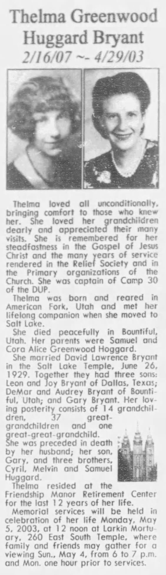 He was born 28 Feb 1909 in American Fork, a son of Samuel and Cora Alice Greenwood Huggard. He married Eldean Leah Barney 18 Sep 1929, in Salt Lake City.