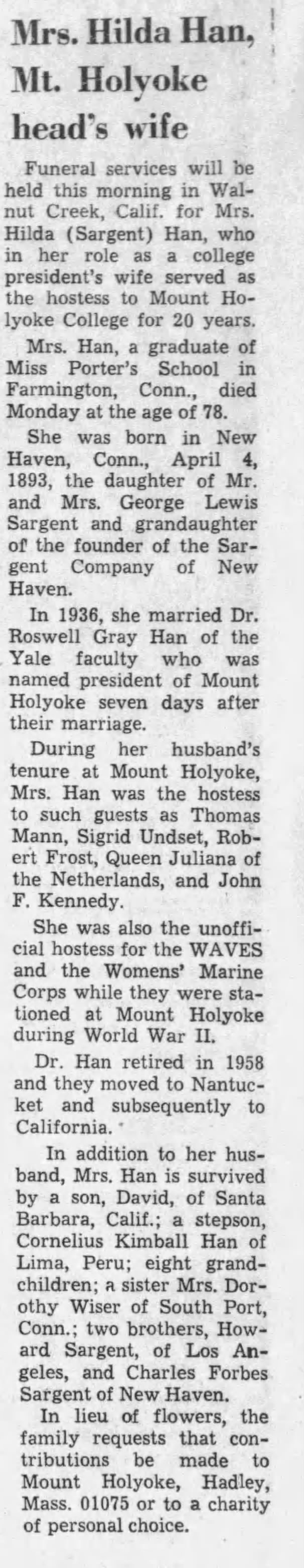 - She graduated from the Capen School, Northampton, Massachusetts, about 1926.3