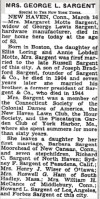 - [S280] 1910 US Federal Census, New Haven, New Haven County, Connecticut, digital image Ancestry, National Archives micropublication, George L Sargent head of household, Ward 8, Roll T624_139, enumeration district 0407, page 9A .