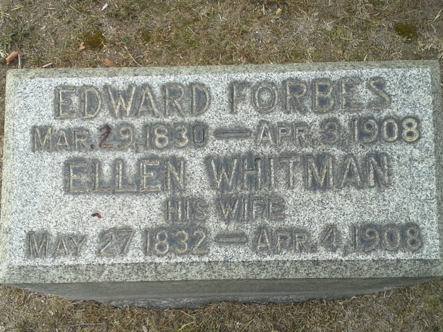 - [S623] Boston Evening Transcript, Boston MA, Newspaper, Edward Forbes, Ellen Forbes, obituary notice, published 6 Apr 1908, p 16.