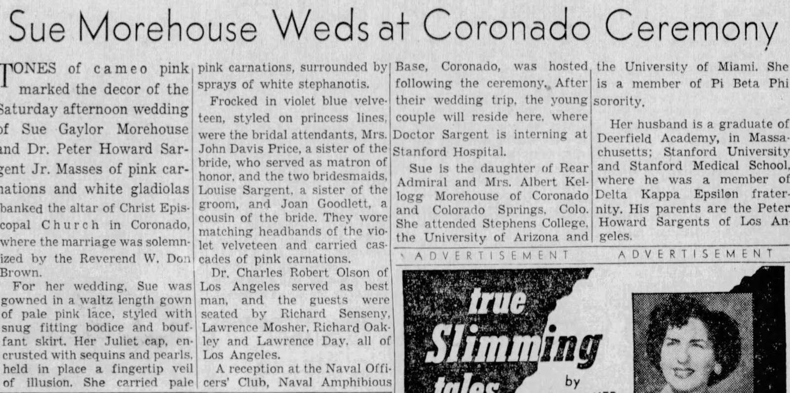 Louise Sargent Sill passed away October 2, 2011 in Fallbrook, California. Born in Los Angeles, California on December 12, 1927, Louise attended Marlborough School and Colorado College. After completing her degree from Wright-McMahon, she became an Executive Secretary at Carnation Company. Always lively and fun, Louise was a wonderful friend. She was a part-time dance instructor, loved her garden, was a wonderful cook and enjoyed playing games. At the center of her life was her family to whom she was a caring wife and mother. Louise is survived by Chuck Sill, her husband of 55 years, their 3 children, Leslie, Lisa, Charlie, and grandson, Christopher. Donations may be made to the Fallbrook Animal Sanctuary.