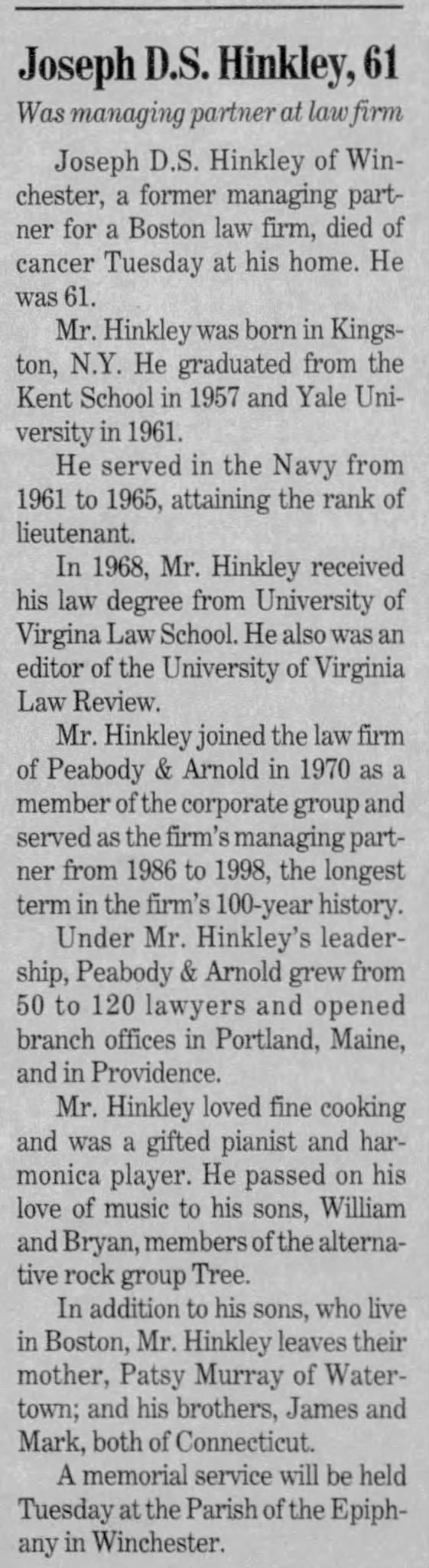 Joe was also a member of Asylum Hill Congregational Church and The Hartford Golf Club.