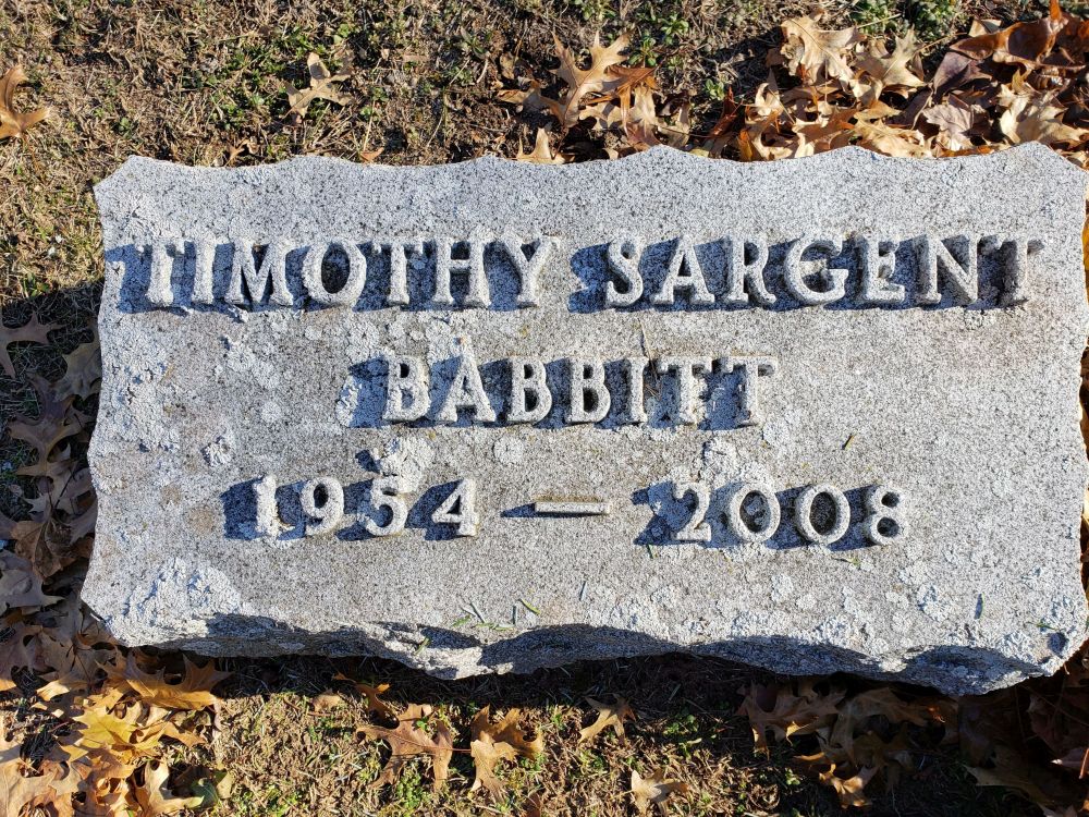 - [S5349] Find A Grave: Grove Street Cemetery, New Haven, Connecticut, Timothy Sargent Babbitt, created by Sandra Markham, added Dec 2018, memorial number 195451381.