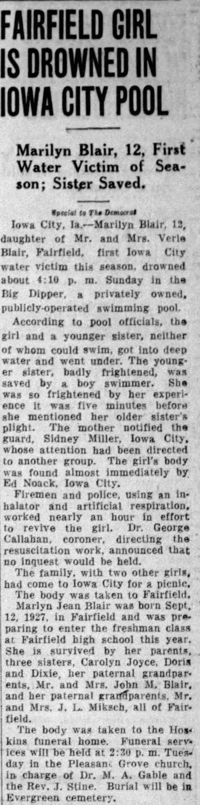 In 1954, Wayne was united in marriage to Doris J. Blair of Fairfield, Iowa.