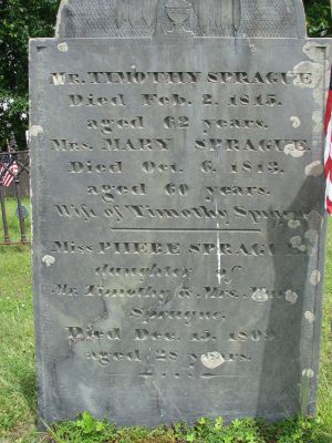 - [S7662] Find A Grave: Rawson Brook Burial Ground, Leicester, Massachusetts, Mary Sargent Sprague, created by Denise M, added Jun 2009, memorial number 38607856.