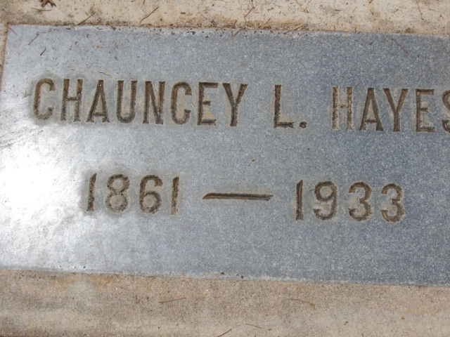 - [S7190] Find A Grave: Hillside Memorial Park, Redlands, California, Chauncey Lester Hayes, created by Barbara LeClaire, added Sep 2008, memorial number 29757223.