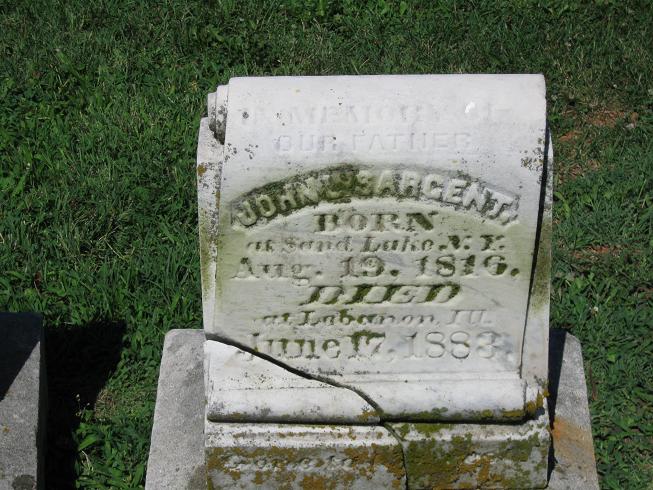 CHARLES SARGENT was a native of Worcester, Massachusetts. When the second war with Great Britain broke out, he enlisted in the marine service and served until after the close of the war, being discharged at New Orleans in 1815. From New Orleans he worked up the Mississippi river about 1816, and settled on a farm near Kaskaskia. He was soon after united in marriage with SARAH SMITH of St. Clair county, and continued to work the farm for some years afterward. He then removed to Belleville, Illinois, where he engaged in mercantile trade, and for some years was sheriff of the county.