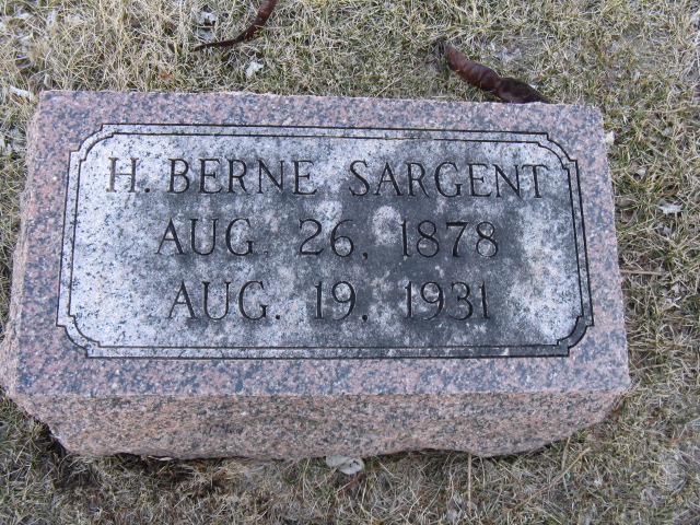 - [S8175] Find A Grave: Hillside Cemetery, State Center, Iowa, H Berne Sargent, created by Genealogy Buff, added Dec 2008, memorial number 45773386.