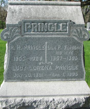 - [S8174] Find A Grave: Clay Cemetery, Rubio, Iowa, Lila Persis Sargent Pringle, created by Lettie Kirby, Jim Herring, added Feb 2009, memorial number 33849305.