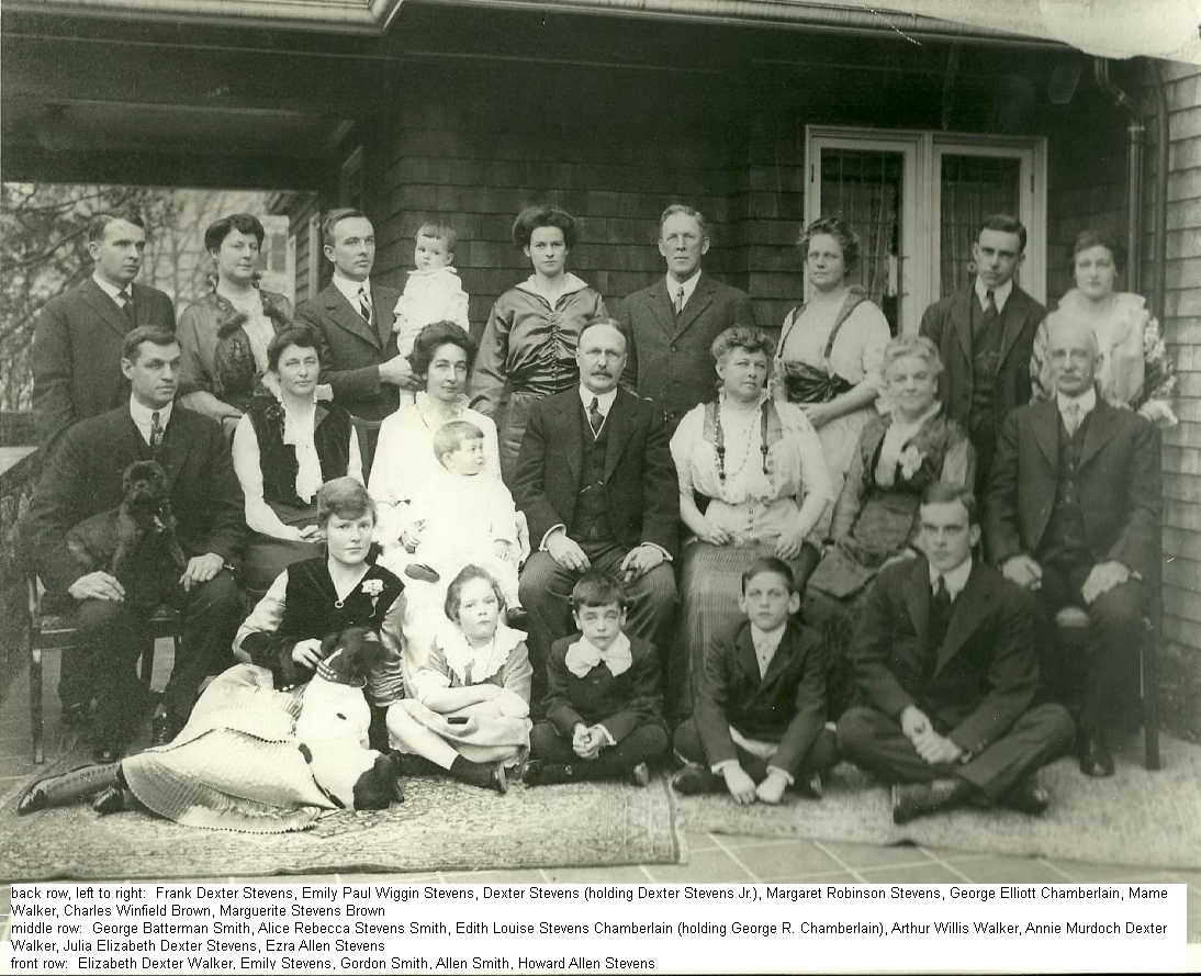 - He appeared in a family photo in 1914 Family portrait of the Ezra Stevens Family. 6 Alpine St, Malden MA (the Walker residence). Julia Dexter (who married Ezra Stevens) was the sister of Annie Dexter (who married Arthur Walker.)4