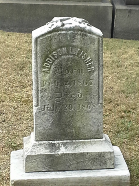 - [S5349] Find A Grave: Grove Street Cemetery, New Haven, Connecticut, Addison L Fisher, created by DWW, added Sep 2015, memorial number 152091828.