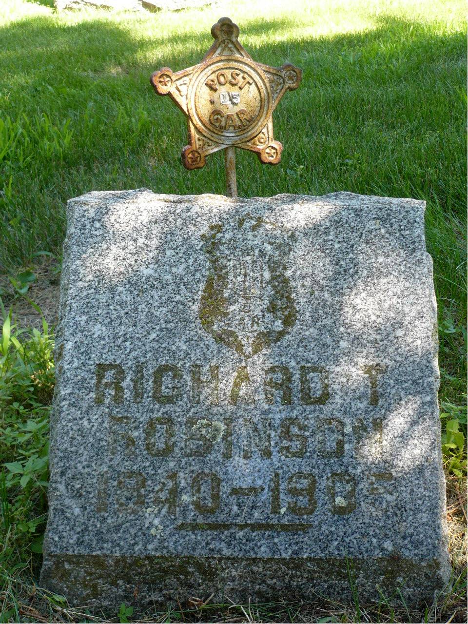 "In October 1865, I married Harriette Copeland of Boston, who lived but a short time, leaving no children, May 21, 1867. Was married again to Emma F. Fisher in 1868. I was appointed Grand Worthy Assist ant Secretary of the IndependentOrder of Good Temples of Massachusetts, which o ffice I held for nearly 2 years.After that I went to Boston, Mass and Providenc e R.I. for a business directory. In the spring of 1872, I engaged in the prin ting business in Boston, firm name, Kendell and Robinson, was broke up by the B oston fire in Nov. 1872, tried to renew our business but owing to lack of capit al had to succumb in the spring of 1873, sold out all remaining interest in th e business and removed with my family to Vineland, New Jersey to try fruit farm ing, struck Vineland the same year the gripe rot did, consequently a failure. " "I went into the shoe factory and learned the business. Together with three o ther men, started a small factory at Newfield, N.J. in 1878, which was a failur e principally owing to lack of capital (one of the other partners stole the pay roll R.F.R.)." "During the fall election campaign of that year took an active pa rt laboring with and for the labor element. That year I joined the Knights o f Labor, was not a candidate for any office." "In the spring of 1879, broke up m y family, sent wife and three children to Massachusetts and started with olde r boys (Frank & Henry) for Dakota where we arrived in June, 1879, having walke d the last 75 miles in consequence of collapse of pocket book, reached Firestee l, Davison Co., Dakota Territory with just 27 cents in pocket. Wife and childr en arrived in Firesteel in Spring of 1880. In May of the same year, we went o n a farm (SE qtr Sec 23, town 104n, range 60W). In the fall of 1886,was nomin ated for office of County Register of Deeds on the Republican ticket, was defea ted by a small majority. In July 1887, the previous legislature having create d the office of County auditor was appointed to that position. In 1888, was el ected to the same office by a large majority and again in 1890, serving until M arch 1895."Joined the Congregational Church at Mitchell, Sept. 1888, was Chairm an of the Board of Trustees and Deacon. Was an active member of the Y.M.C.A. a nd was its treasurer." In 1889, was appointed Assistant Adjutant General of th e Grand Army of the Republic for Dakota Territory, attended the National Encamp ment at Milwaukee, Wis. that year. In 1890, was sent to the National Encampmen t at Boston, Mass. as adelegate-at-large for the State of South Dakota." The f ollowing was taken from "The descriptive list & account of pay and clothing o f Private Richard T. Robinson of Co.C. 44th Mass Reg. "Engaged in a skirmish a t Little Ford, Smitherwick Creek near Williamston, N.C. Nov. 2. 1862." The fol lowing was taken from a history of the war by the U.S. Government. New Berne, N ov. 15, 1862 Sir: I have the honor to report the following as the result of th e skirmish in which a brigade was engaged on Sunday night Nov. 2, 1862". "At ab out dusk, as the advance guard, composed of the Marine Artillery, a company o f the 10th Connecticut and a portion of cavalry were crossing Little Creek on t he road from Washington to Williamston, they.6