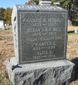- [S2697] Find A Grave: Forest Hill Cemetery, Fitchburg, Massachusetts, Francis A Munroe, created by DaurRegt, added Jul 2013, Memorian number 114504699.