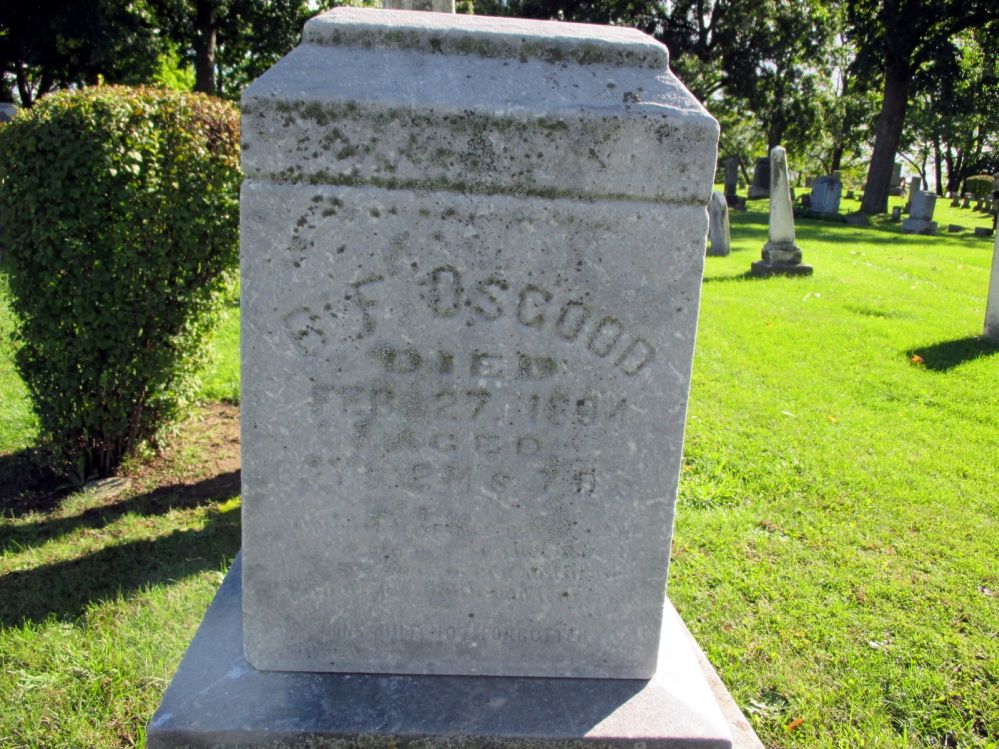 - [S6124] Find A Grave: Coloma Cemetery, Coloma, Michigan, Benjamin Franklin Osgood, created by Scout, added Feb 2013, memorial number 105492629.